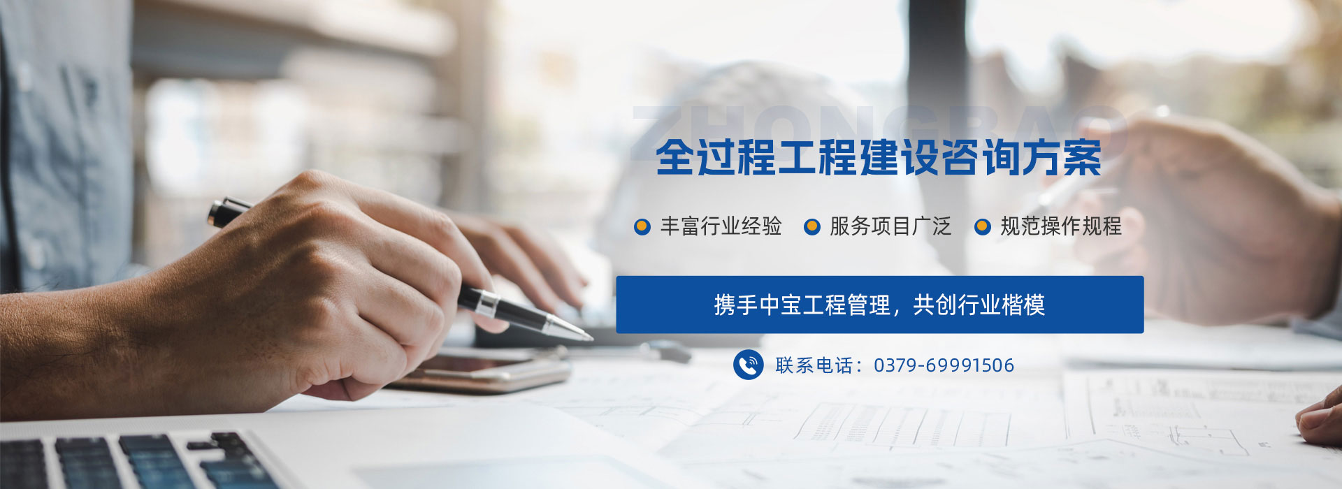河南中寶工程管理服務有限公司是一個由十多位在工程咨詢服務及CPA行業有著多年工作經歷、豐富行業經驗、高素質人士于2009年開始籌劃運作凝聚而成的精英團隊,主要從事全過程工程咨詢、審計、工程造價、招標代理、資產評估、績效評價、可行性研究報告編制與評審、稅務咨詢與籌劃、政府和社會資本合作(PPP)項目咨詢與評審、政府專項債券全過程包裝咨詢、項目及建設項目全過程管理咨詢服務、工程設計、破產清算咨詢服務、課題及職稱服務等業務。2019年6月注冊,注冊資本為1018萬元,是集會計、審計、工程、評估、設計、招標、PPP項目、績效評價、政府專項債券、課題職稱為一體的綜合性鑒證機構及綜合性研發中心。公司注冊地址:河南省洛陽市洛龍區開元大道與關圣街交叉口怡和嘉園小區3號樓12樓1201室。是河南省全過程工程聯盟(河南省科技廳、河南省住建廳批準的全過程工程咨詢機構)常務理事單位,是洛陽技術研究院發起單位。協助洛陽技術研究院打造全過程聯盟洛陽技術研究院工程咨詢行業“六大平臺”:業務技術交流平臺、業務信息共享平臺、業務互助合作平臺、服務能力提升平臺、執業職稱促進平臺、科學技術研究平臺?! 」粳F有員工56人,全部為大學??埔陨蠈W歷,其中,本科及以上學歷占75%;中級、高級職稱人員占50%;擁有注冊執業資格證書人員占45%。公司有穩定的服務團隊和專家指導團隊,有河南省財政  廳及洛陽市財政評審專家5人,河南省財政廳績效評價入庫專家2人,河南省財政廳土地整治(理)評審專家1人,河南省財政廳高級會計師評審專家庫成員1人,河南省綜合評標專家庫專家1人,河南省審計廳外聘審計專家庫專家1人,河南省財政廳政府和社會資本合作(PPP)專家1人?! 」臼冀K注重加強內部治理。按照國家法律法規和行業規范,先后制訂了《業務質量控制及監督檢查機制》、《業務質量責任追究與賠償機制》、《采購代理業務內部監督管理辦法》、《項目管理責任制》、《重大風險事項報告制度》、《緊急預案和糾偏方案》、《保密工作條例》、《檔案管理制度》、《員工行為規范》等近20項規章制度,以樹立企業理念,規范操作規程,嚴格質量把控,強化責任擔當?! 」緦嵭行畔⒒芾?。辦公設備自動化程度高、設備齊全;建立了信息管理系統、資料管理系統、質量管理系統,能夠全方面、快捷、準確的完成各種項目管理及相關咨詢業務,促使各工作流程、組織措施、技術措施、管理措施等相互促進,協調發展,極大地提高了工作效率,為業主項目的順利進展提供了可靠保障。